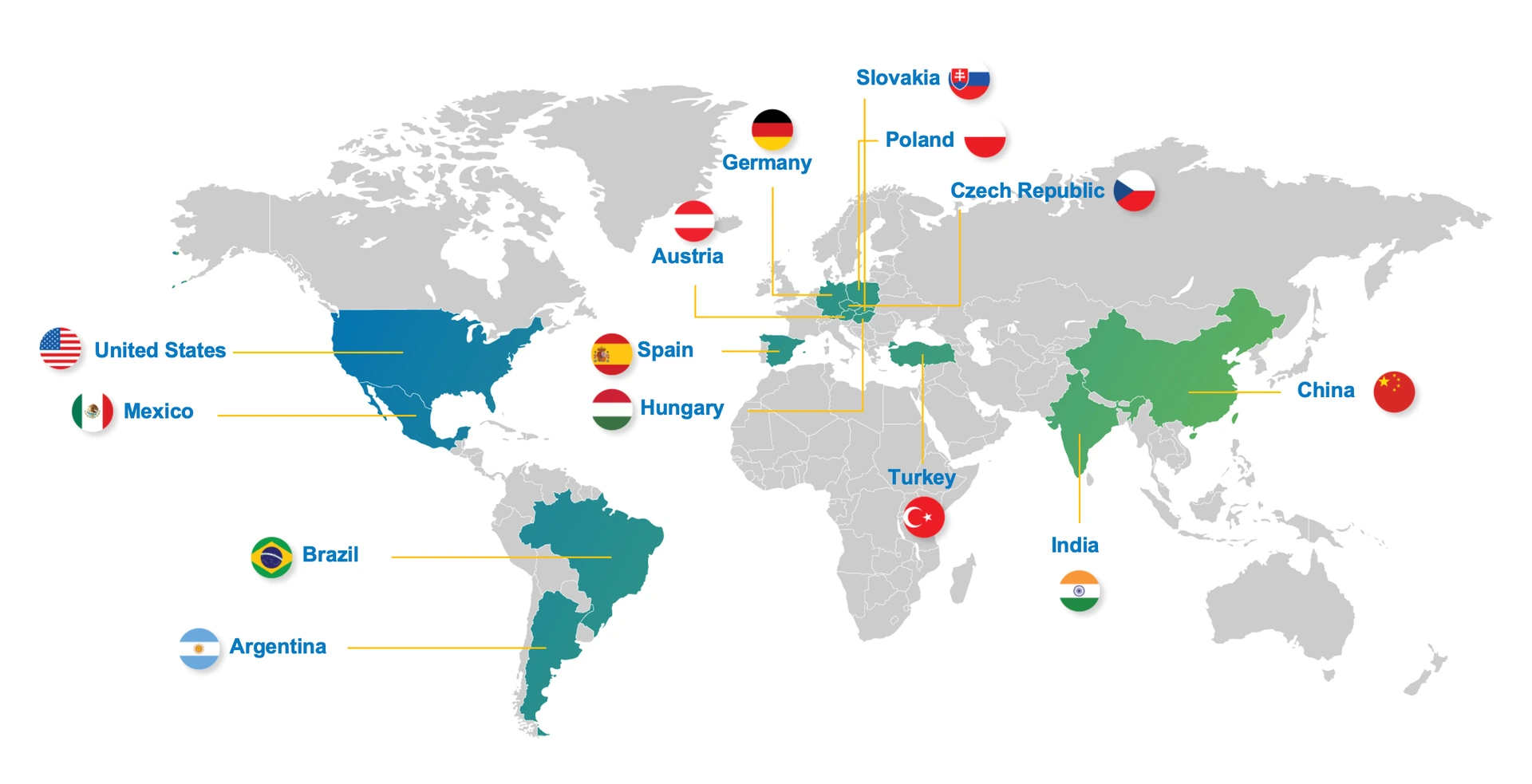 In 2023, the company employed approximately 24,000 people in 38 production facilities worldwide, generating a revenue of US $5.0 billion.